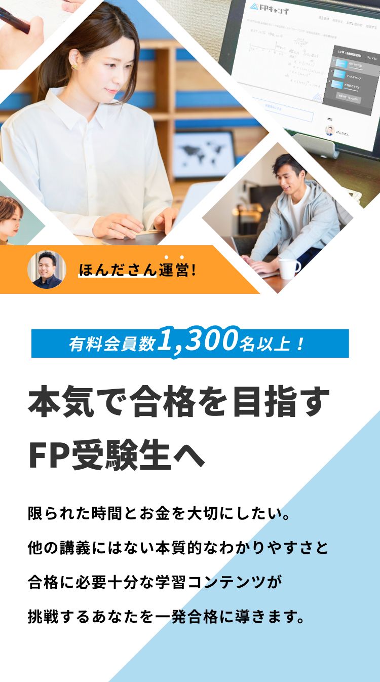 FPキャンプは、本質から理解して合格する学習を基本として、学ぶ楽しさを感じながら最短時間で合格を目指す人を全力で応援します。
