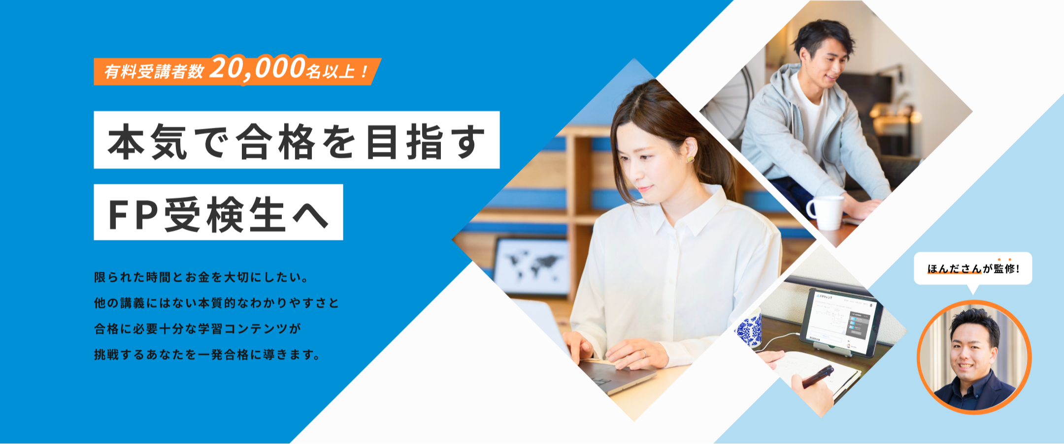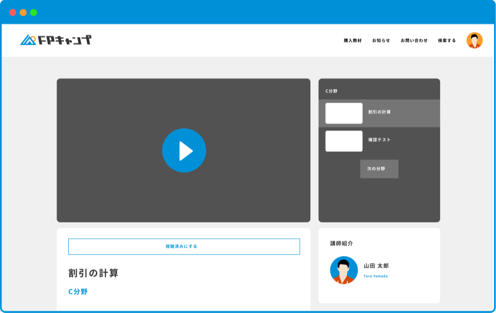 本質を理解する学びの楽しさを感じながら、最短合格に向けて効率的に学習できるオンラインサブスク型FP資格試験講座です。