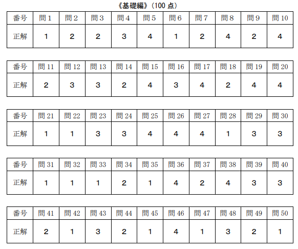 ※公式では非公表のため、予想となります。計算過程がある問題においては部分点が付与される可能性もあります。