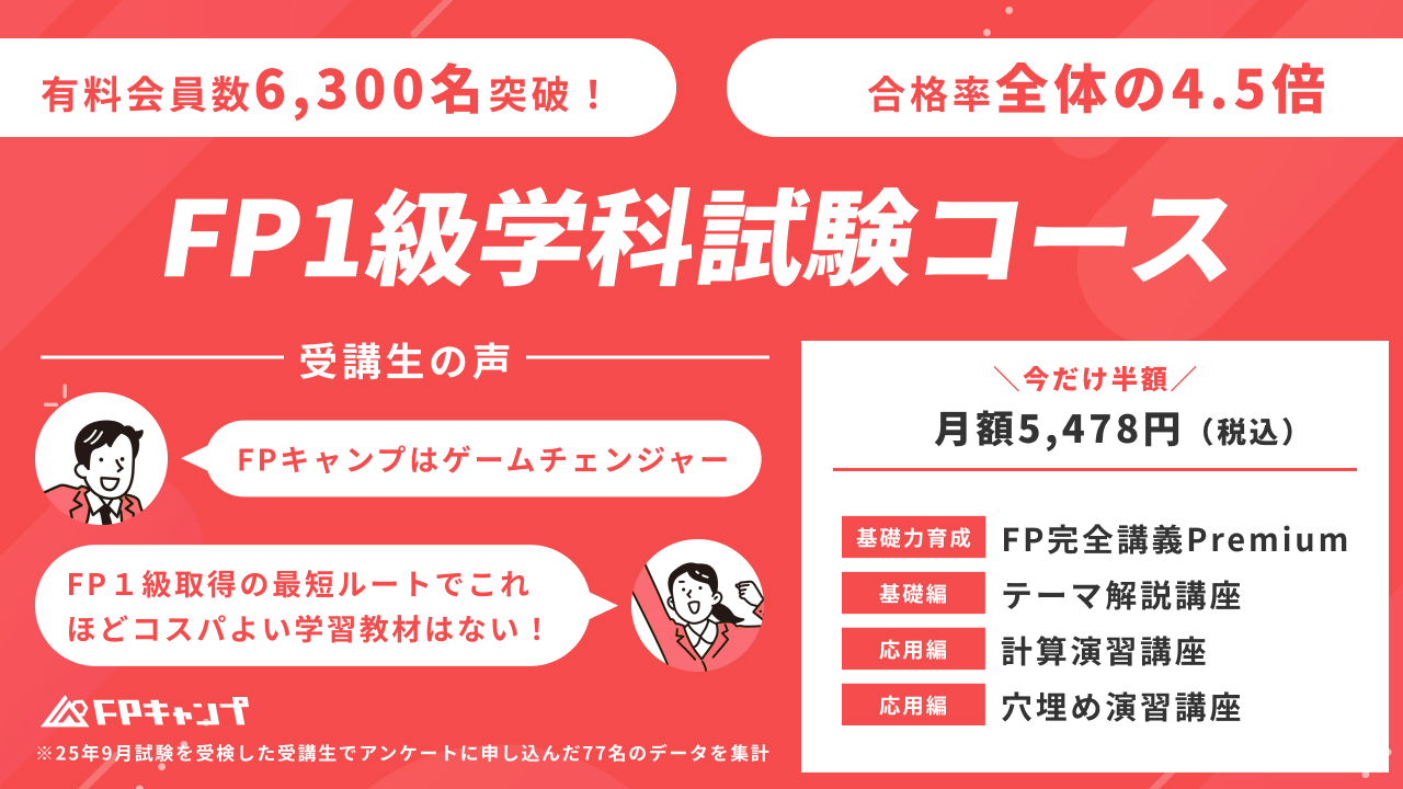 FPキャンプ1級学科試験コースはこの険しい道のりを突破するために必要十分なコンテンツを揃え、受講生の皆様を合格に導きます。
