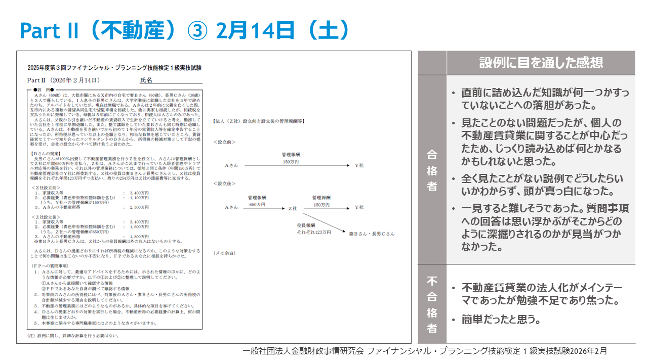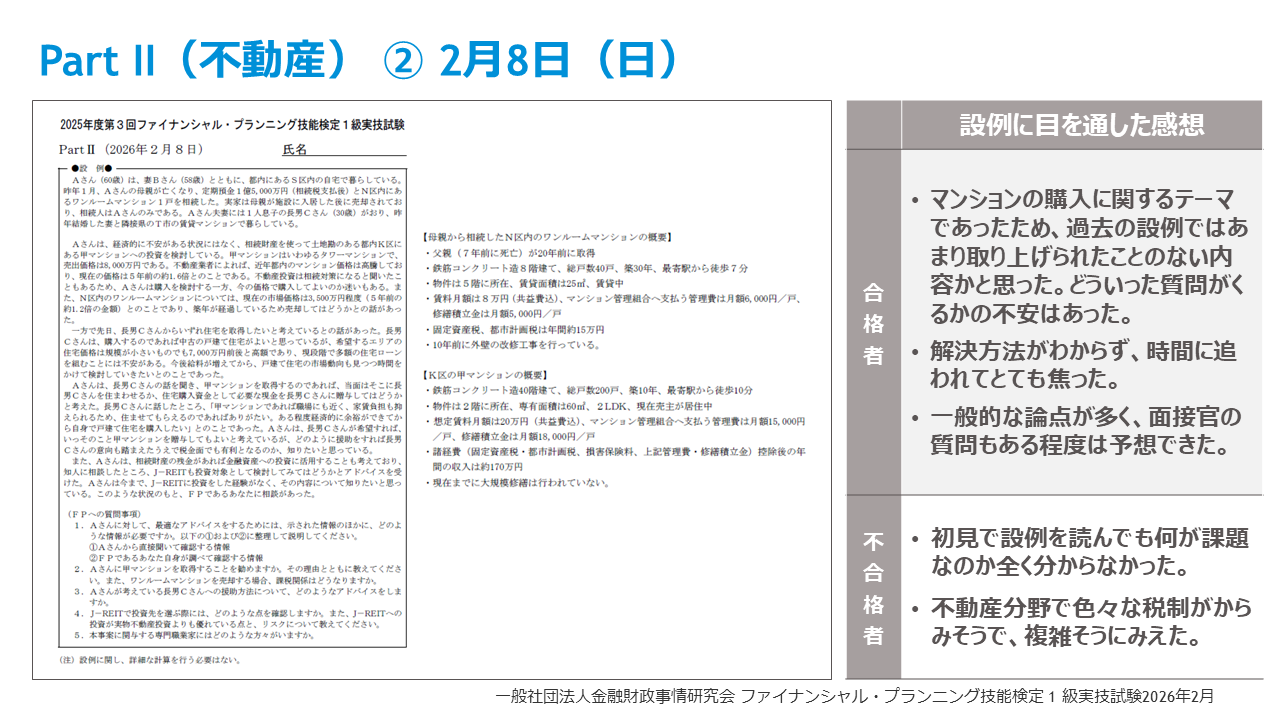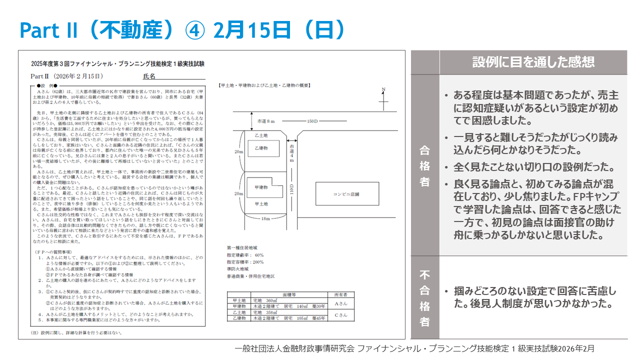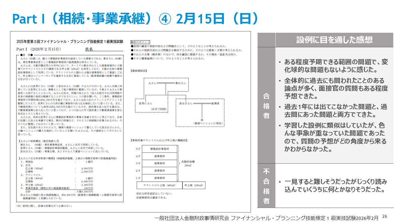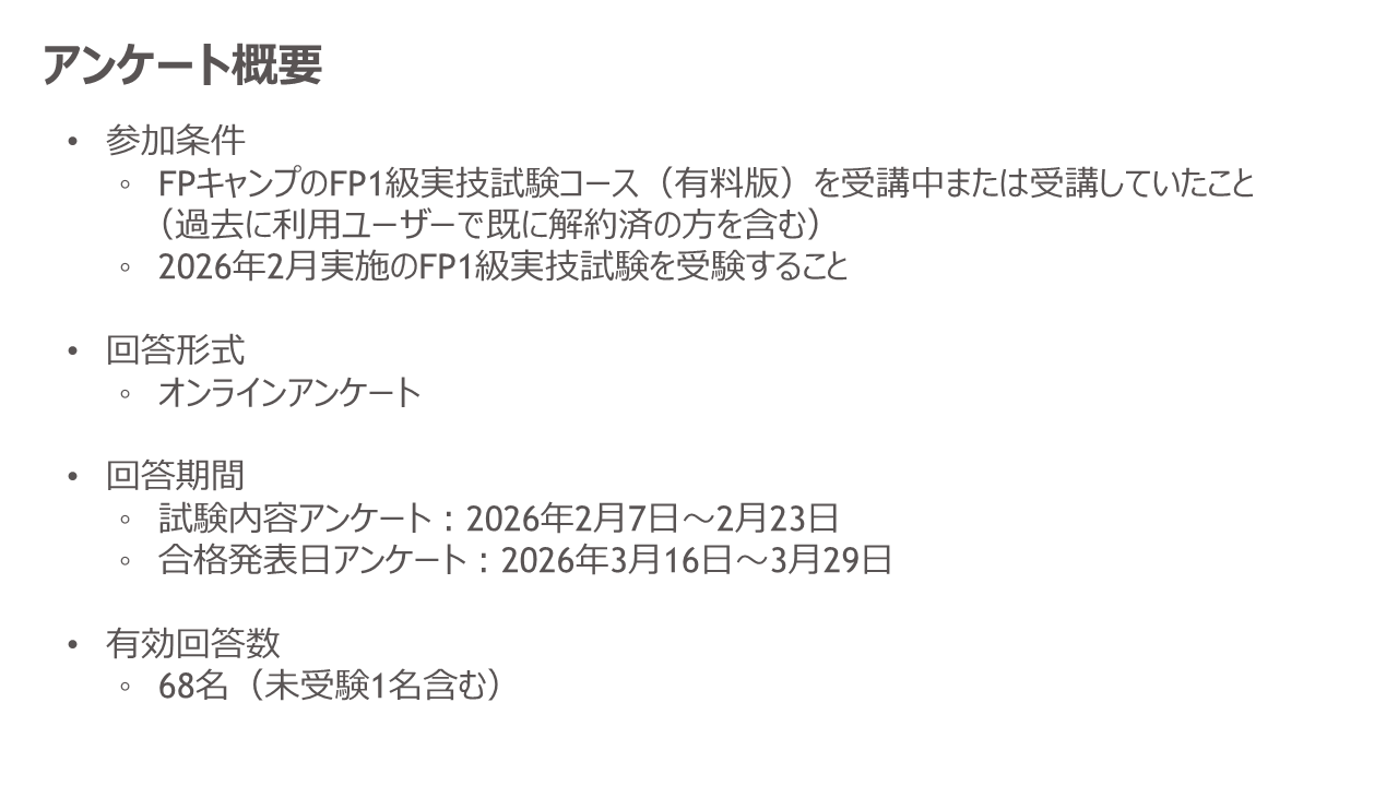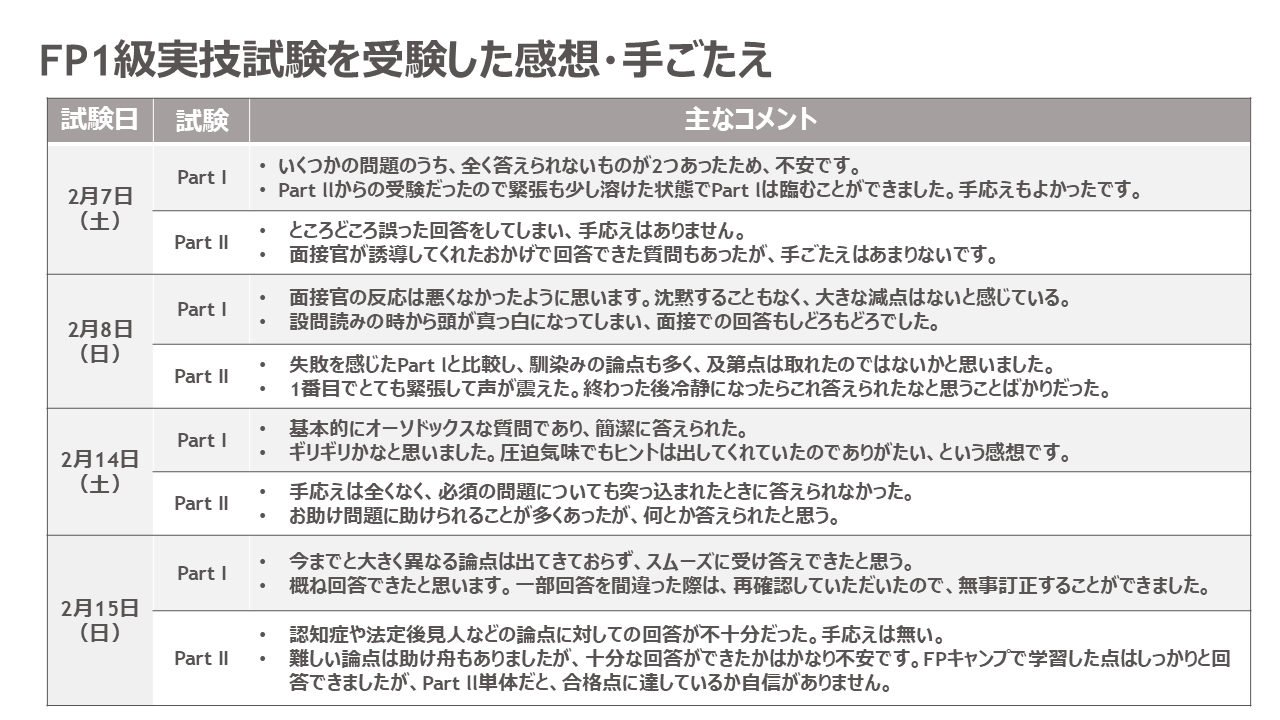 【26年2月FP1級きんざい実技試験】受講生アンケート結果~FP1級実技試験に占める受講生割合は33%、FPキャンプの満足度99%、各試験の面接官のサンプル質問も公開