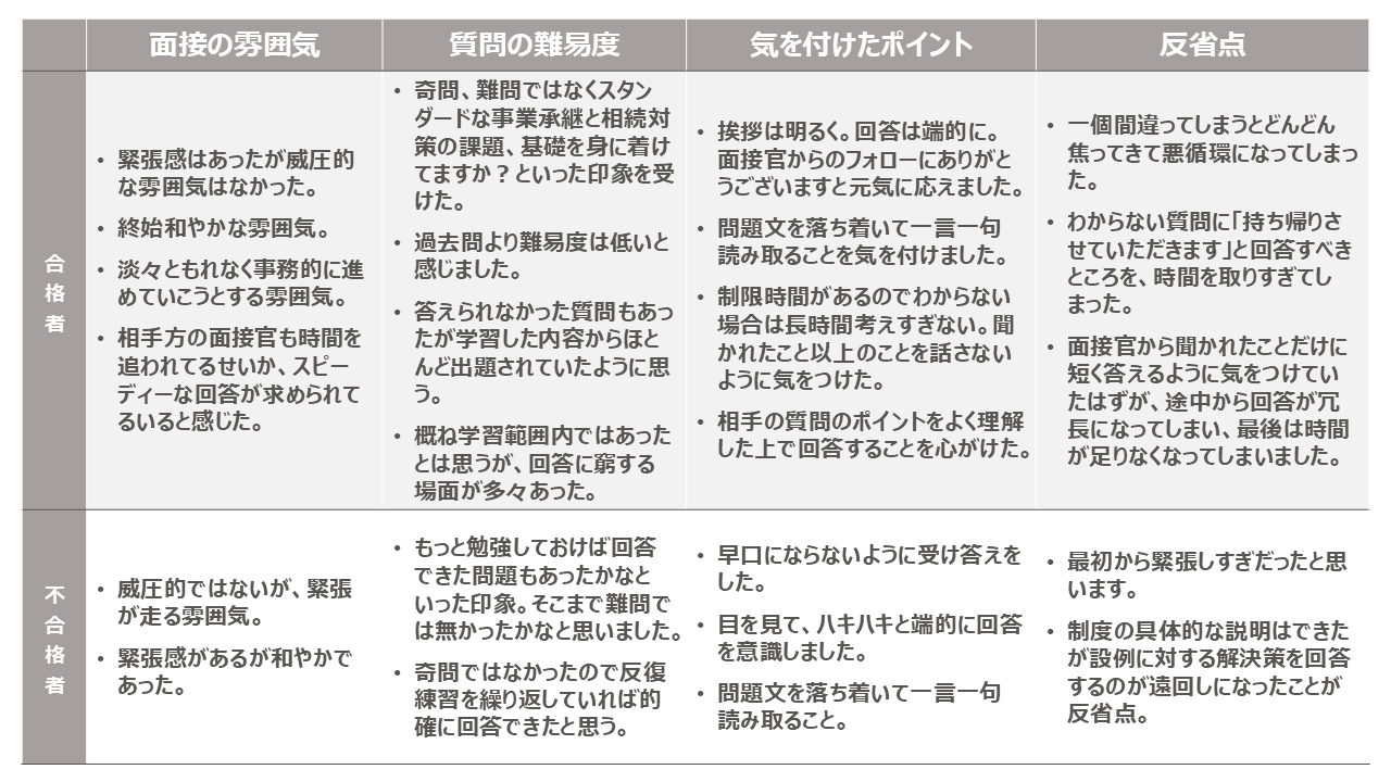 試験別受検者所感