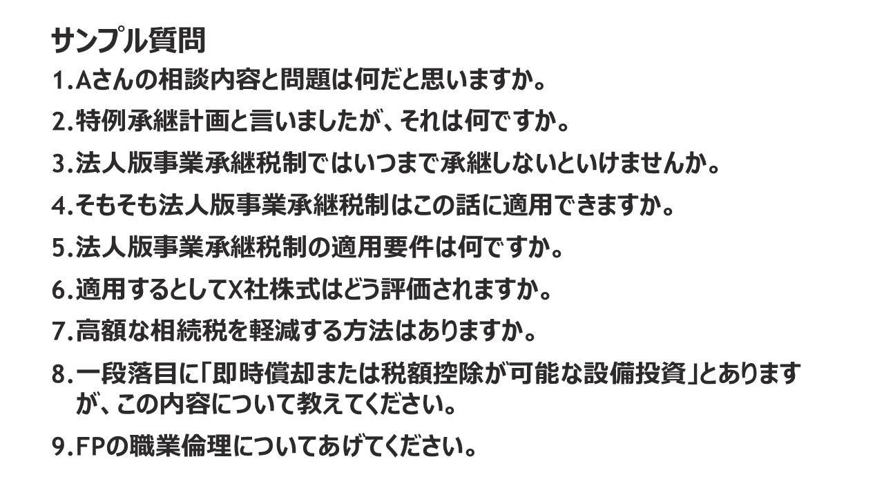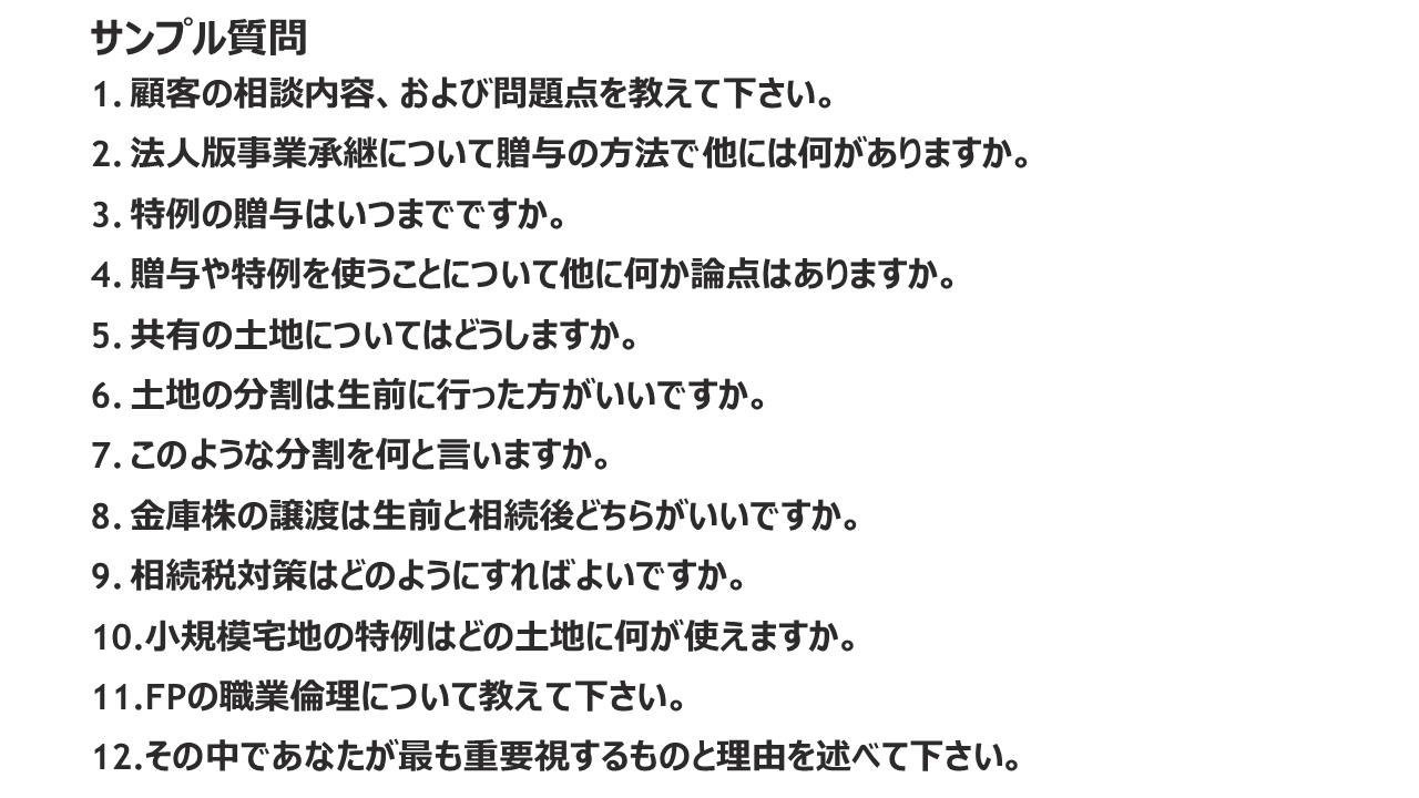 実技になると学習材料が少なくなるなか、最適な教材と出会えたと思いました。市販の問題集では回答も長く自分に落とし込めずにいました。質問に対してズバッとかいつまんで回答する部分が何度も繰り返しする学習にはピッタリでした(3名)