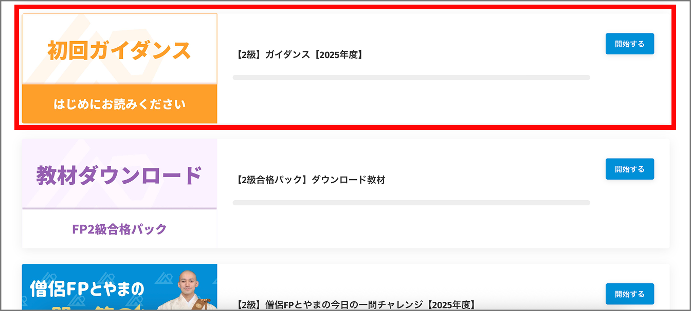 1.講座一覧ページへ移動し、「ガイダンス」をクリックします。