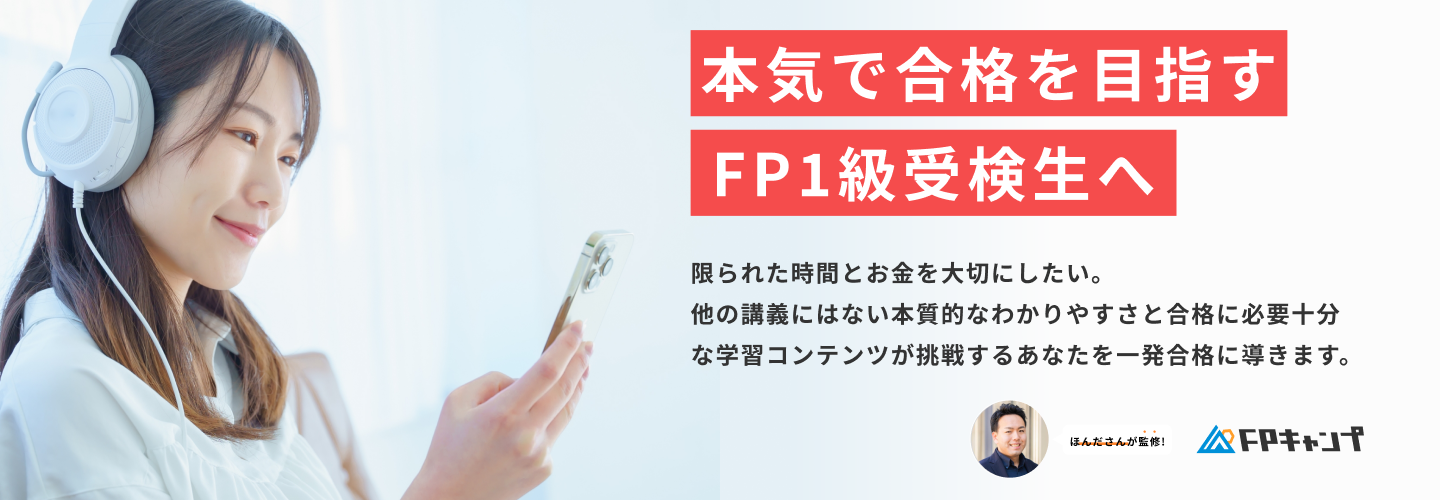 FP解説No.1 YouTuberの「ほんださんFPチャンネル」で大人気のFP完全講義が、FPキャンプで完全リメイク! 数字や知識の暗記だけではない、本質からの理解を重視した講義です。 1動画20分以内と、忙しい日常生活の中でもスキマ時間に視聴できる長さとなっております。学習のベースにご活用ください。
